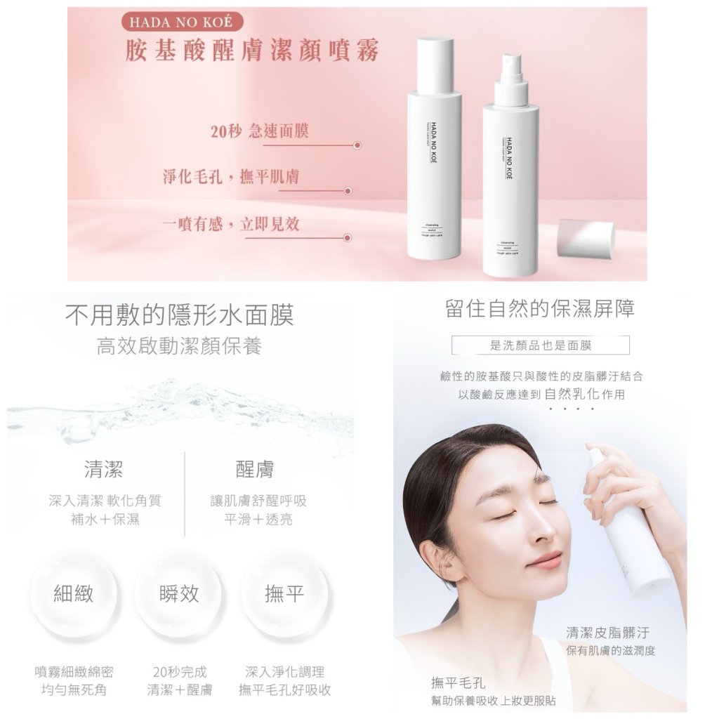 😍噴霧型潔顏面膜新革命,撫平+淨化🉐一次滿足,只需20秒即可完成,讓清潔成為最療癒的保養。