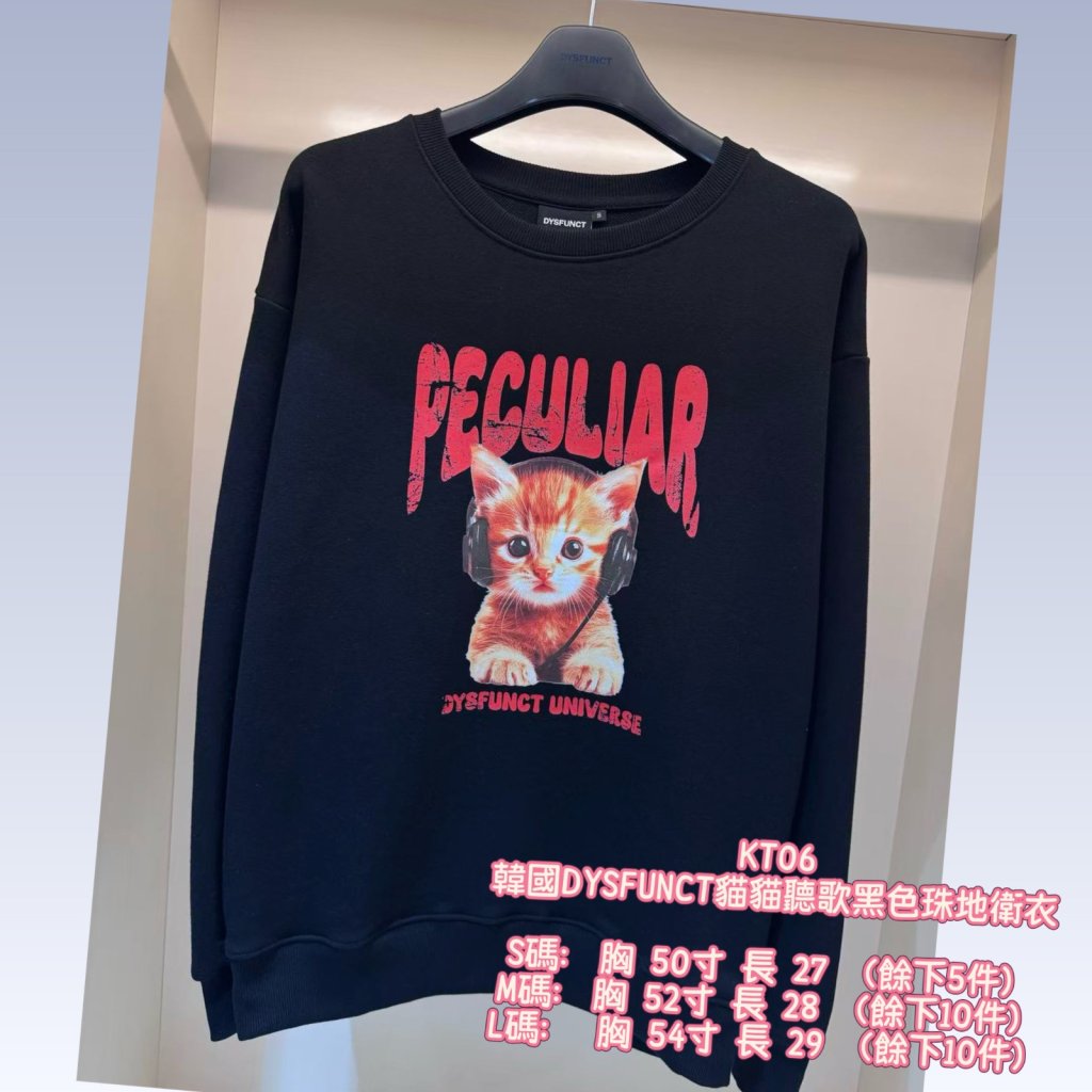 韓國DYSFUNCT貓貓聽歌黑色珠地衛衣