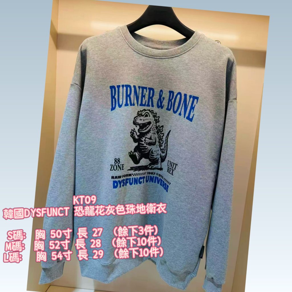 2025 11月韓國連線 韓國DYSFUNCT 恐龍花灰色珠地衛衣