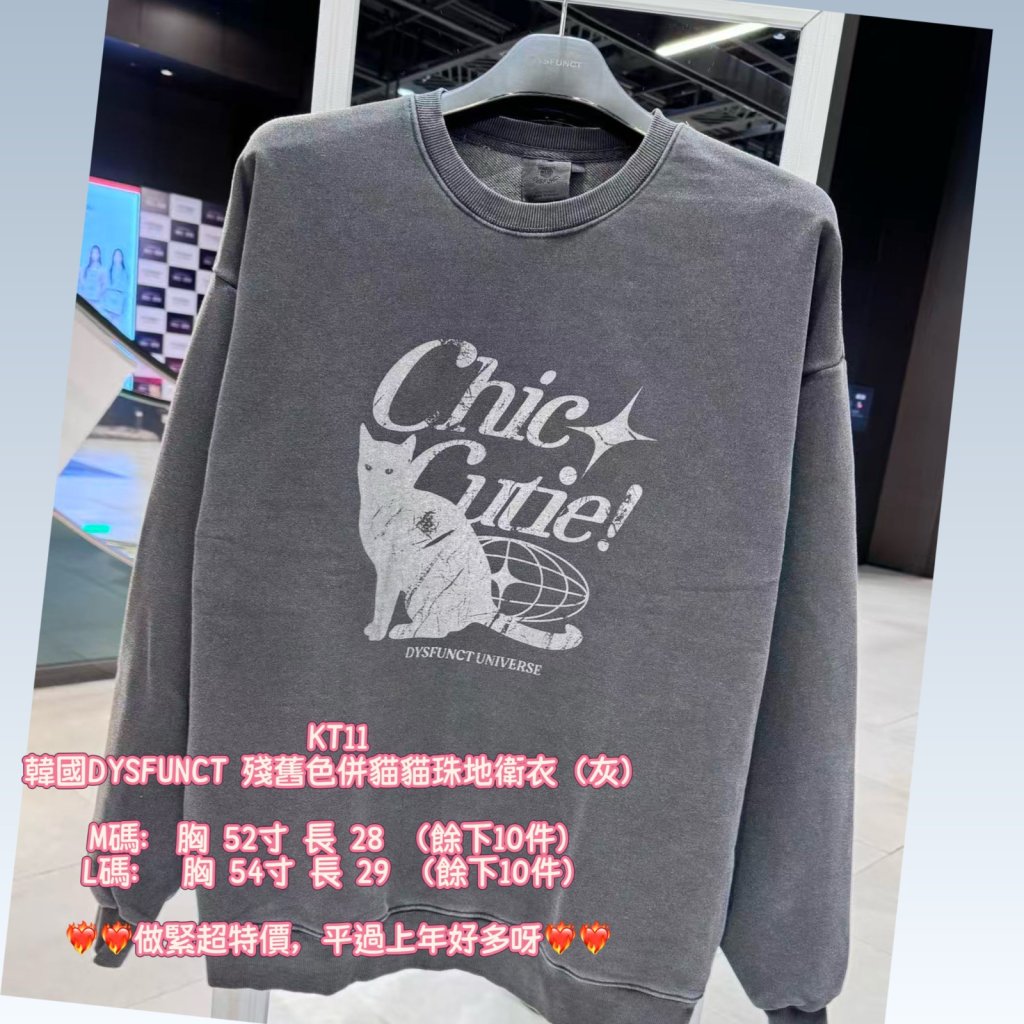 2025 11月韓國連線 韓國DYSFUNCT 殘舊色併貓貓珠地衛衣(灰)