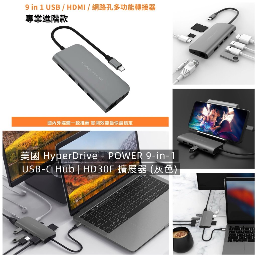 美國 HyperDrive - POWER 9-in-1 USB-C Hub | HD30F 擴展器 (灰色)