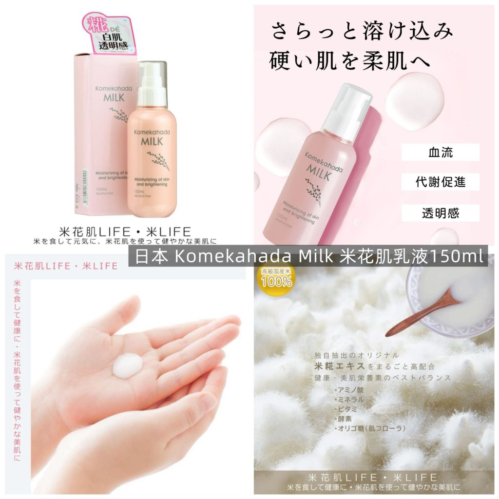 🌸Komekahada Milk 150ml 是一款富含米糀(麴)精華的日本國產乳液,旨在深層滋潤肌膚、調理肌理,並保護肌膚免受乾燥侵害
