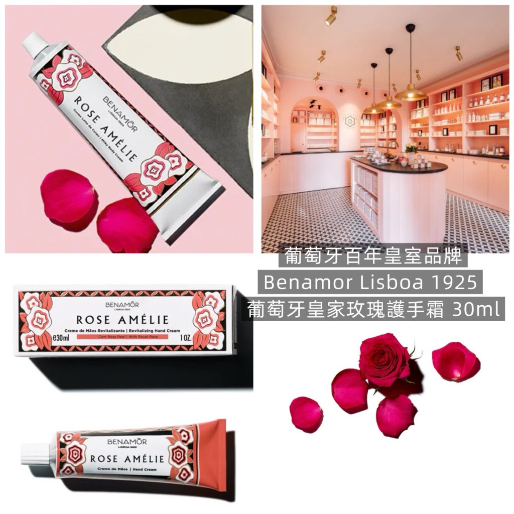 🌺Rose Amélie 是向葡萄牙Amélie王后致敬之作,她是Benamôr品牌的第一位愛用者。融合摩洛哥堅果油與華麗香氛的皇家玫瑰萃取,這款活化護手霜吸收迅速,使雙手柔嫩如絲般光滑。