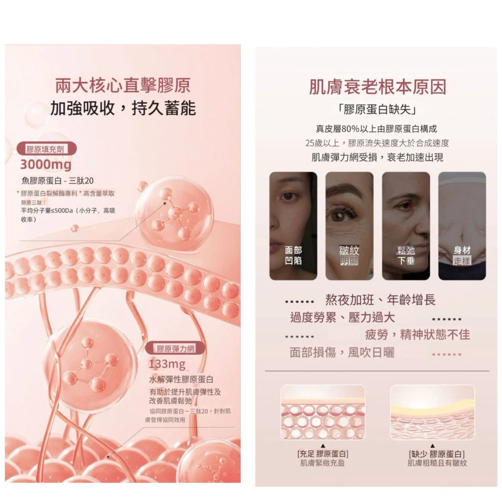 👍🏻一枝已經包含維他命C,分子量僅500道爾頓的深海魚鱗膠原蛋白,彈力蛋白,玻尿酸