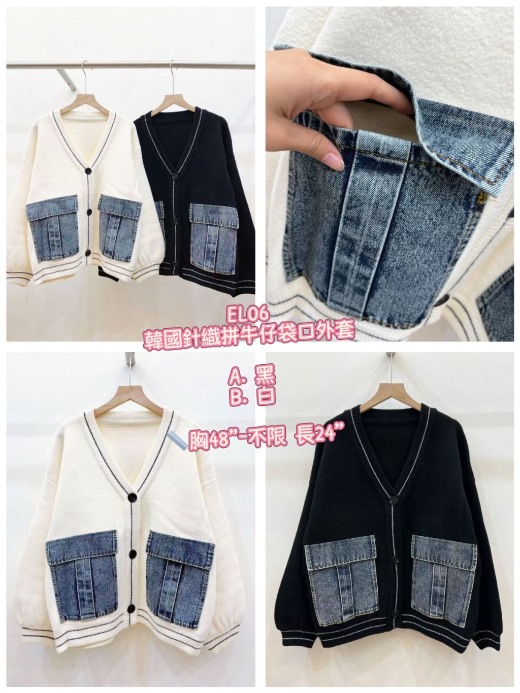 (1月13直播) 韓國針織拼牛仔袋口外套