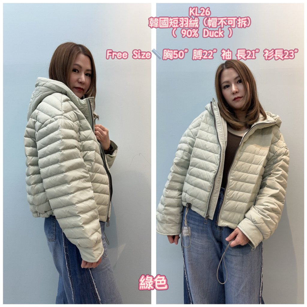 韓國短羽絨 (帽不可拆) ( 90% Duck ) 羽絨優惠:買1件包郵(京東送上門)KL26