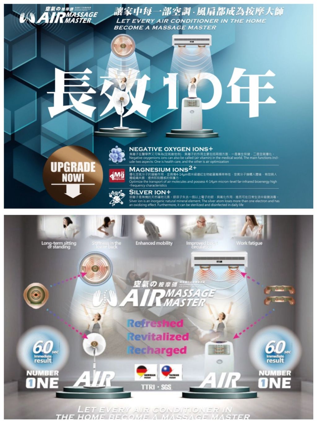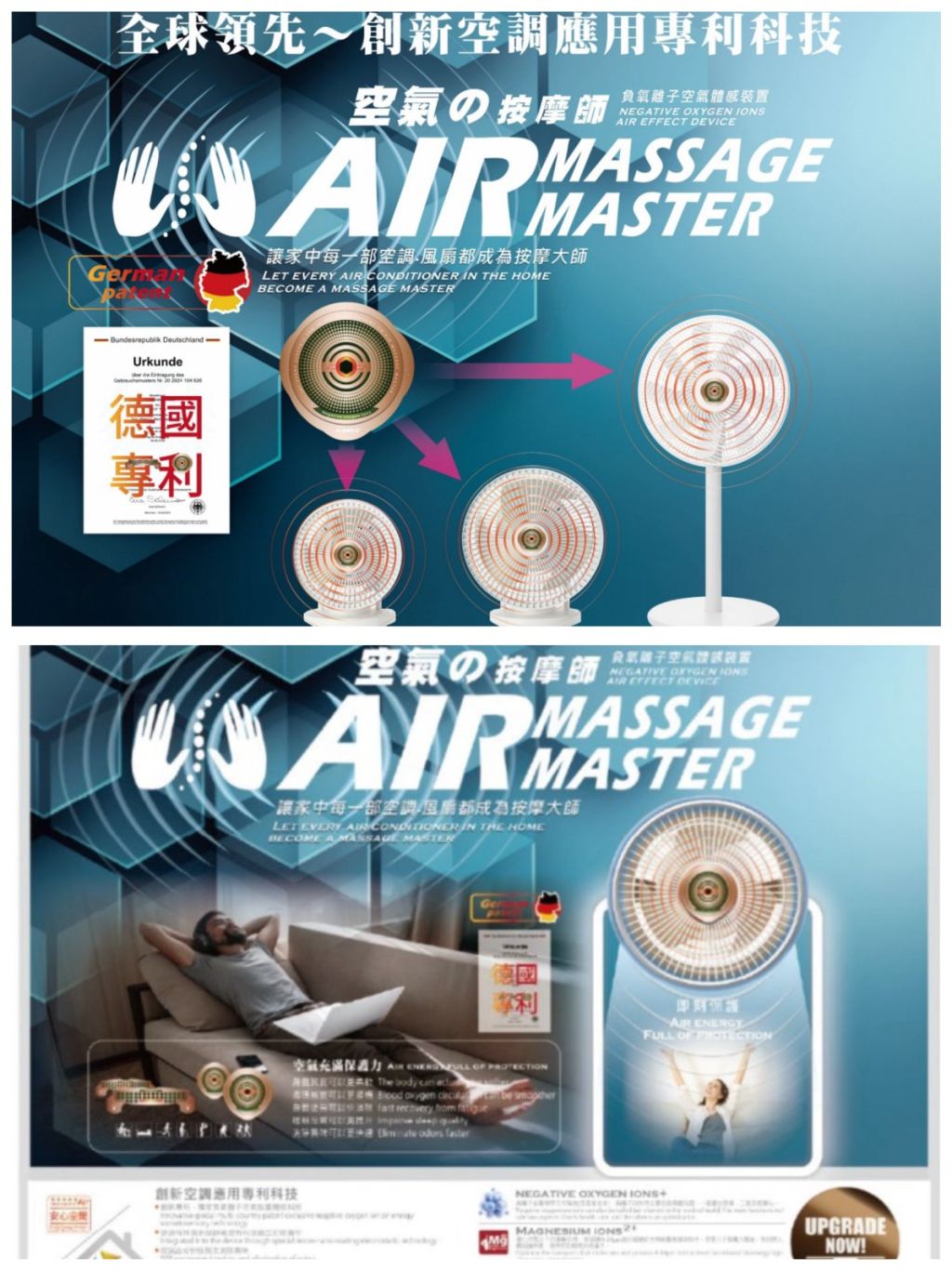 台灣 健鎂力 AIR MASSAGE MASTER 負氧離子空氣按摩體感裝置 (空調)/(風扇)10年長效