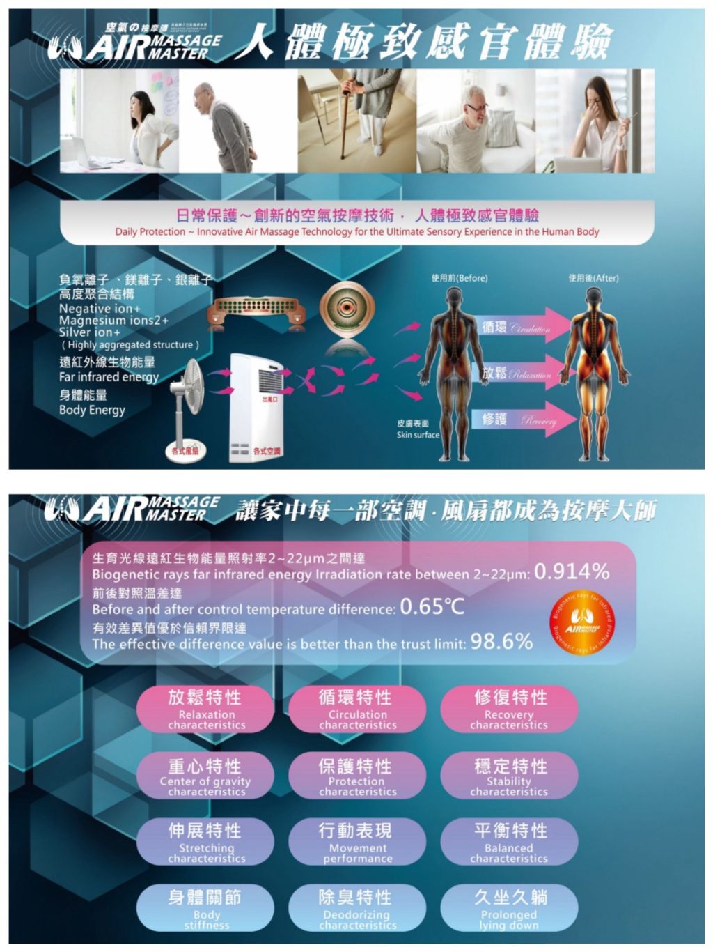 * 創新專利,獨家負氧離子空氣能量體感科技