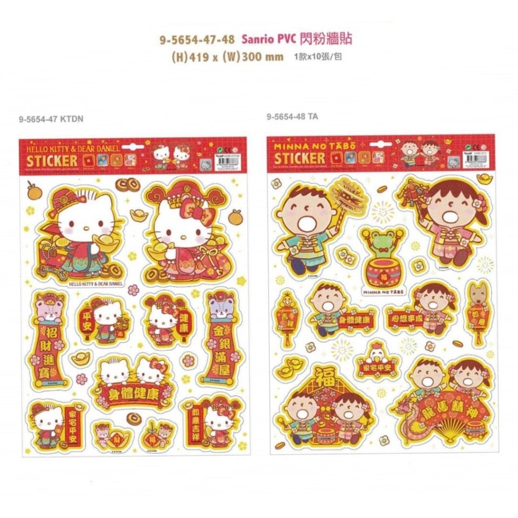 (1月30直播) Sanrio 賀年 牆貼 玻璃貼 (尺寸:42x30 cm)