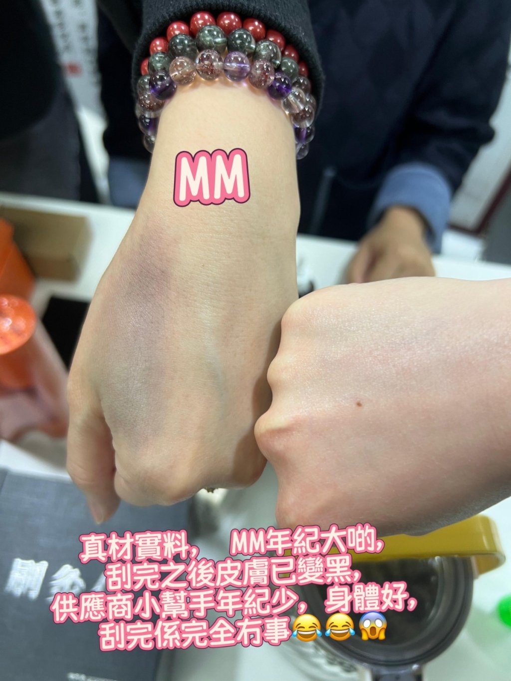 6. 用食指及中指指腹對準眼內角及眼外角,手指呈V字型,用葫蘆頂端由手指V字部分以Z字型由下而上撥筋,可去除水腫眼袋