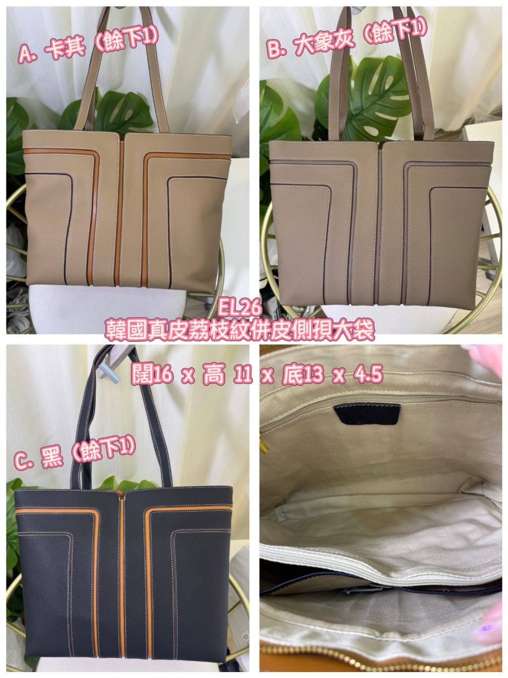 (2月5直播) 韓國真皮荔枝紋併皮側孭大袋