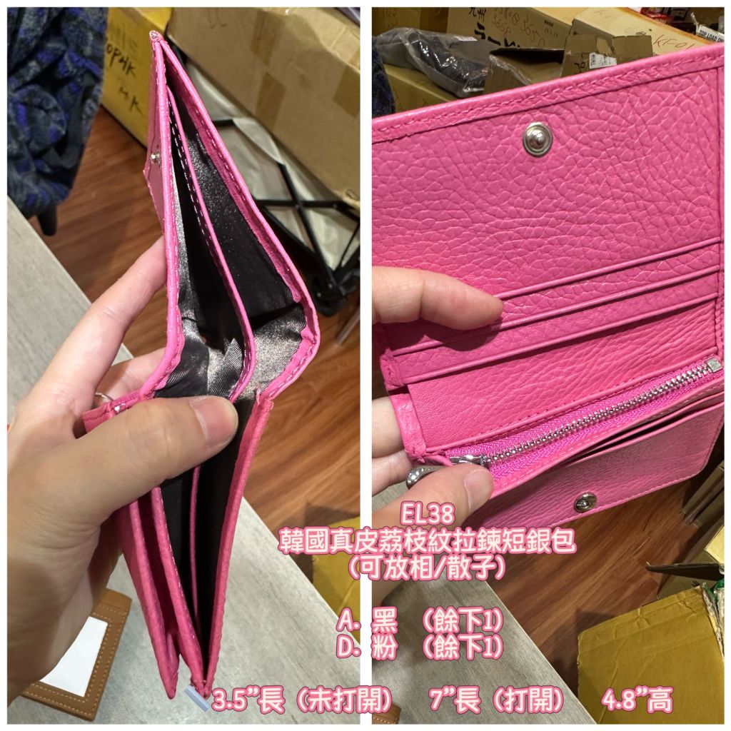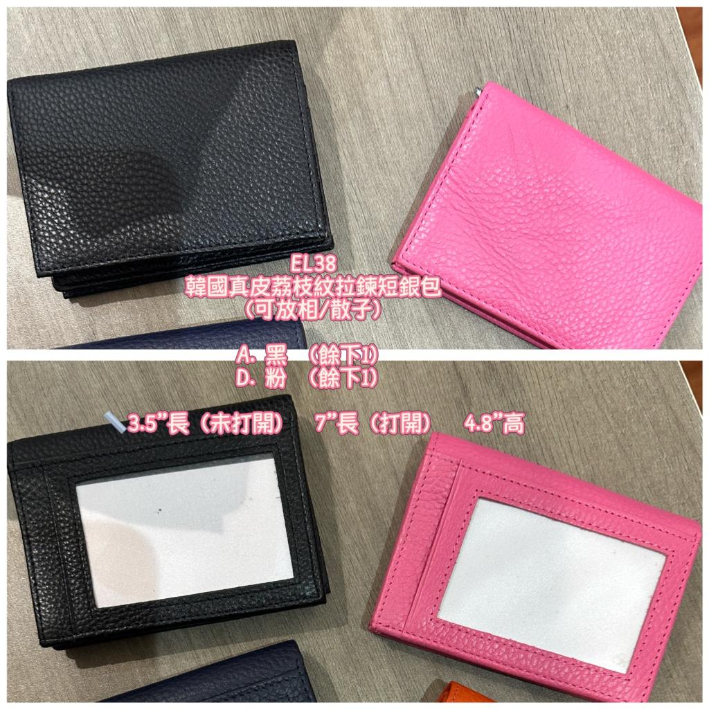 韓國真皮荔枝紋拉鍊短銀包(可放相/散子)