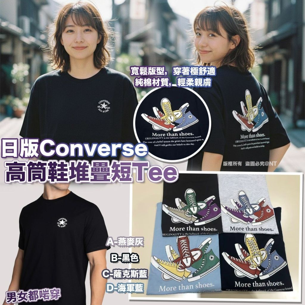 【街頭靈魂:日版 Converse 高筒鞋堆疊短 Tee 👟 玩味背影設計,100% 純棉寬鬆剪裁,穿出美式復古感!】