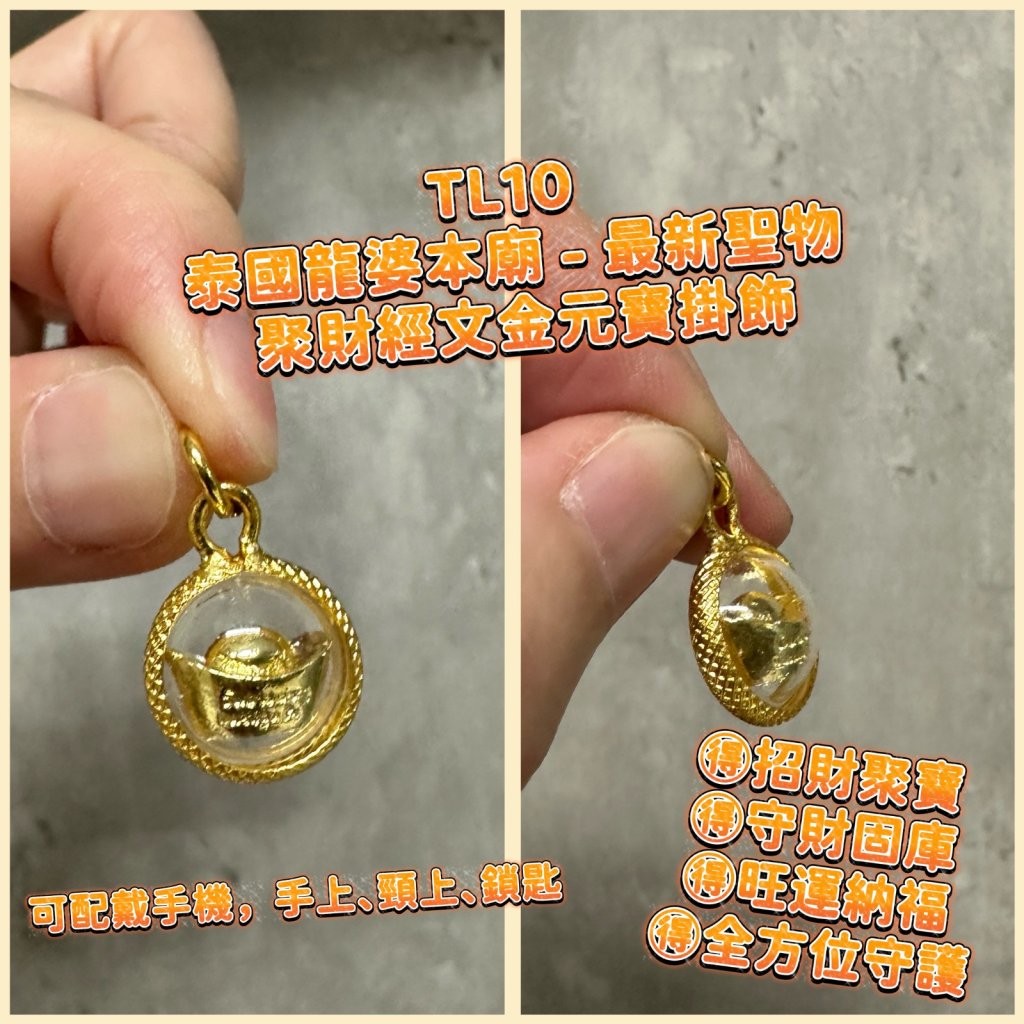 泰國龍婆本廟 - 最新聖物 聚財經文金元寶掛飾