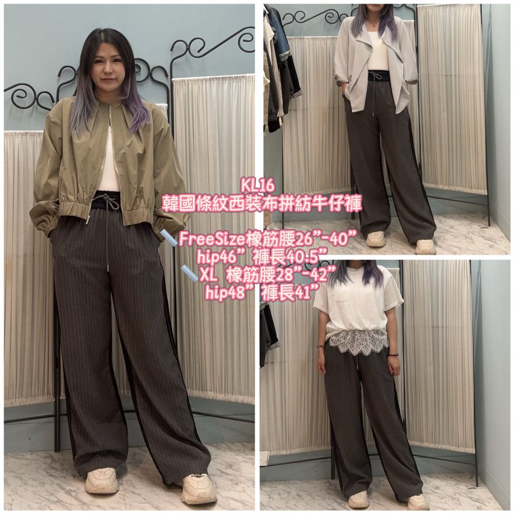 2026 4月韓國連線 韓國條紋西裝布拼紡牛仔褲