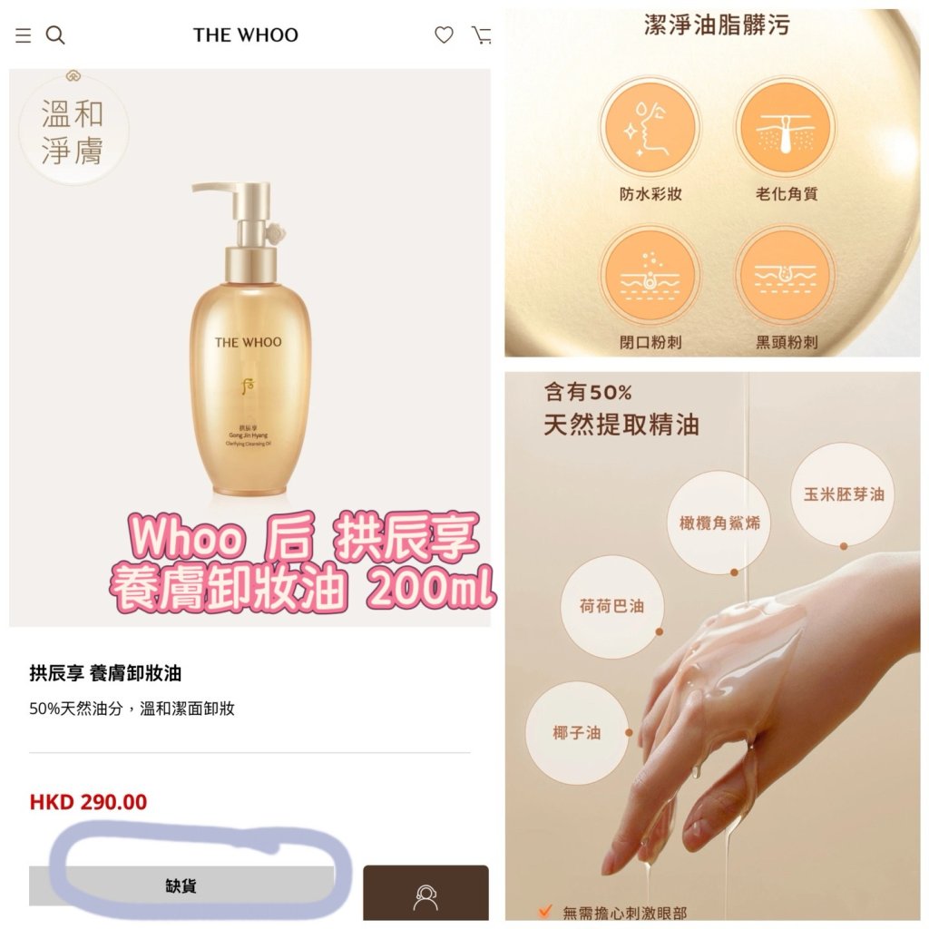 2026 4月韓國連線 韓國 Whoo 后 拱辰享養膚卸妝油 200ml